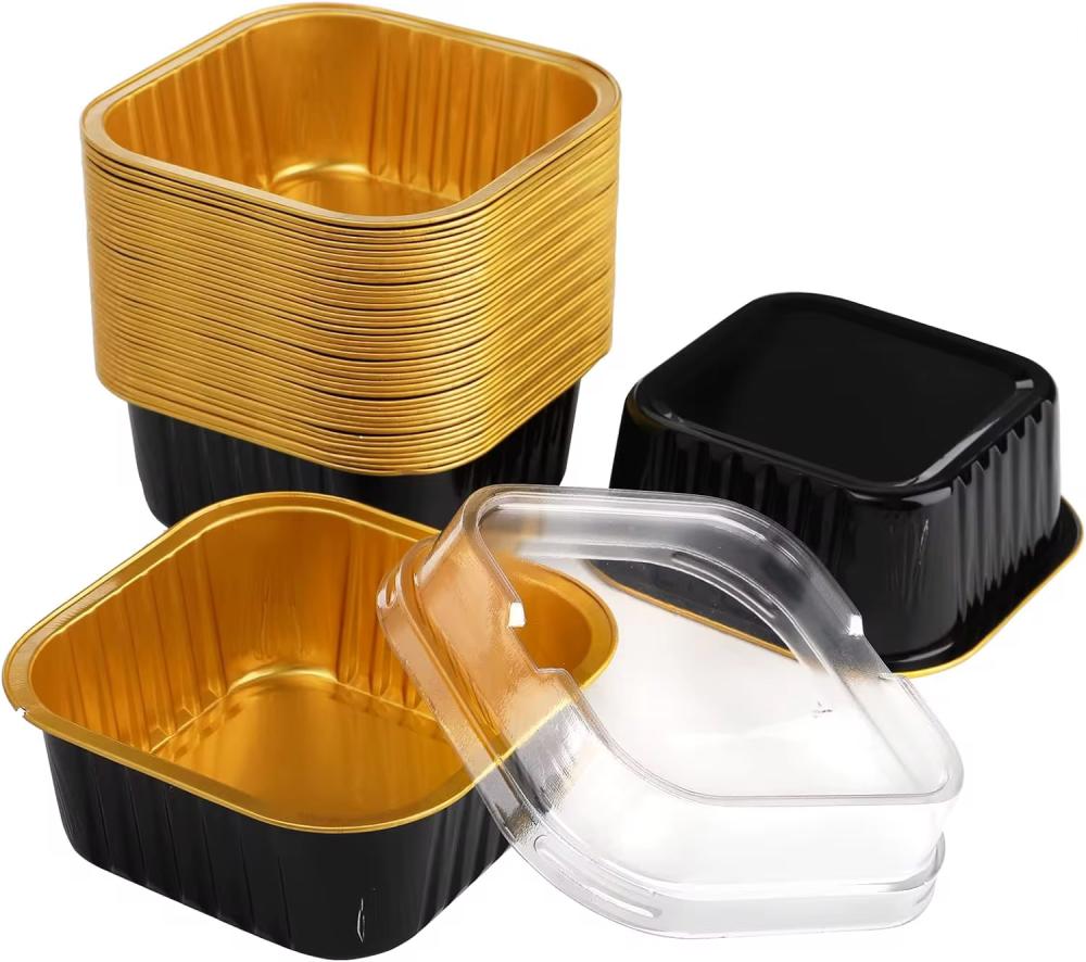 علبة تقديم مربع فاخرة بغطاء شفاف – تصميم ذهبي وأسود أنيق
